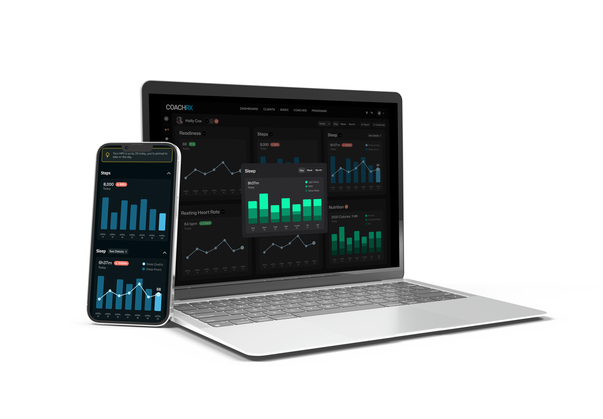 A smarter way to prescribe habits and see change. CoachRx's Lifestyle Rx feature lets you prescribe, track, and refine daily behaviors alongside exercise, with ease. Visual calendars, detailed metrics, wearable integration, plus trends and insights. This is how change sticks